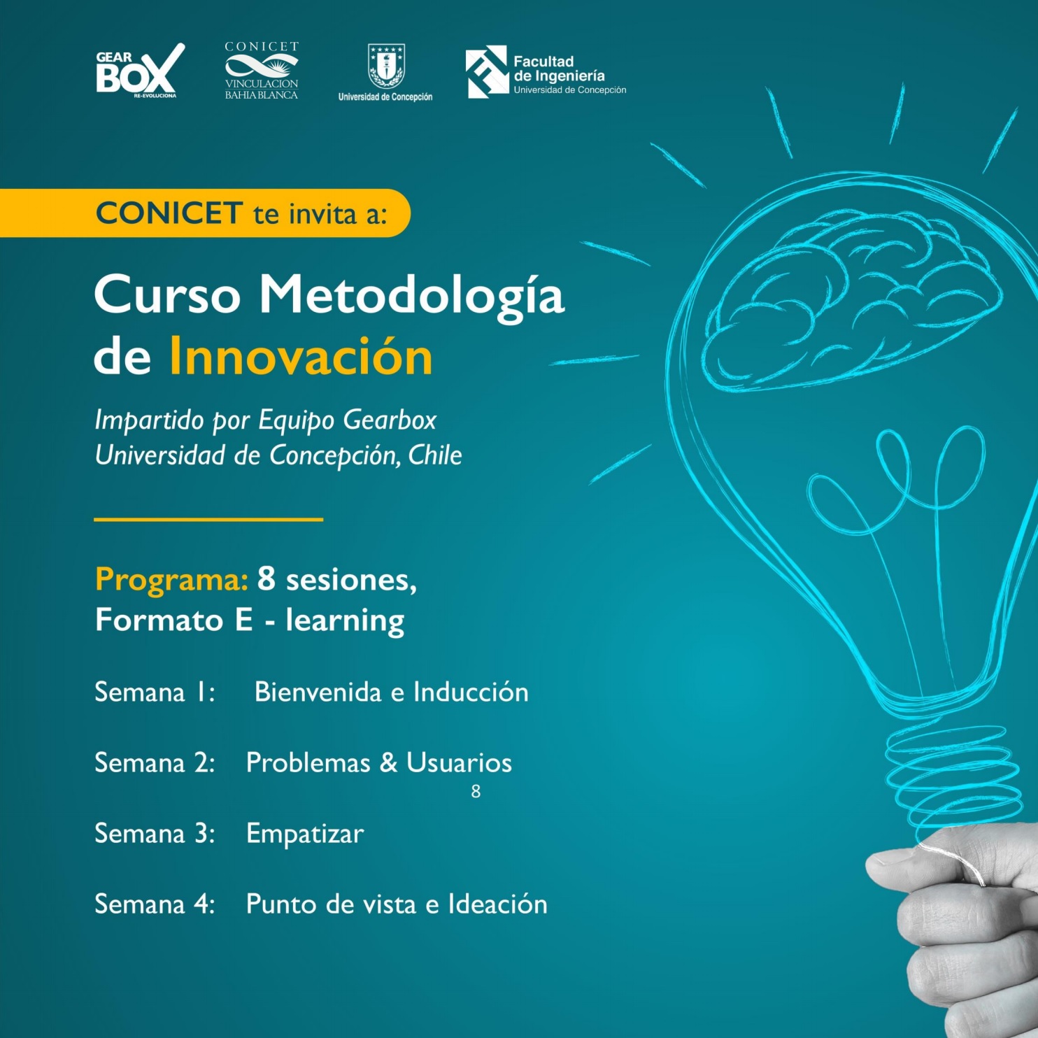 Desde la Oficina de Vinculación Tecnológica - CONICET Bahía Blanca queremos hacerles llegar la invitación al curso "Metodologías de Innovación - 2021", co-organizado con Gearbox (Universidad de Concepción, Chile), a dictarse el 31 de Marzo en formato virtual; pensado para dar herramientas en capacidades blandas a Emprendedores de base Científica-Tecnológica y/o que estén pensando en llevar al mercado algún desarrollo o servicio tecnológico de una forma más eficiente.