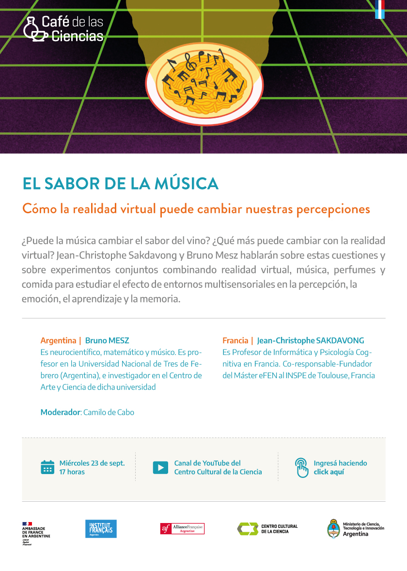 23/9 CAFÉ DE LAS CIENCIAS- El sabor de la música. 17 h en vivo por el canal de You Tube de C3