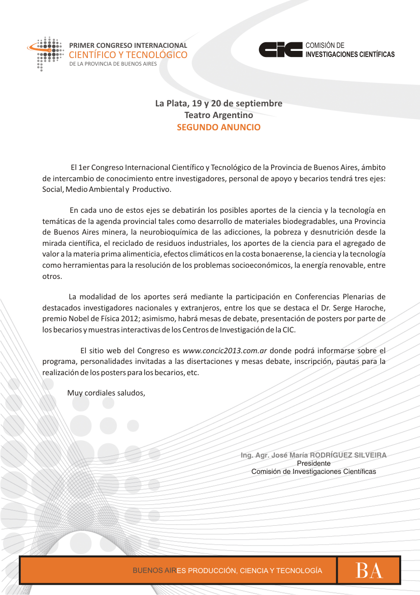 Anuncio Congreso Internacional Científico y Tecnológico-Pcia. Bs. As